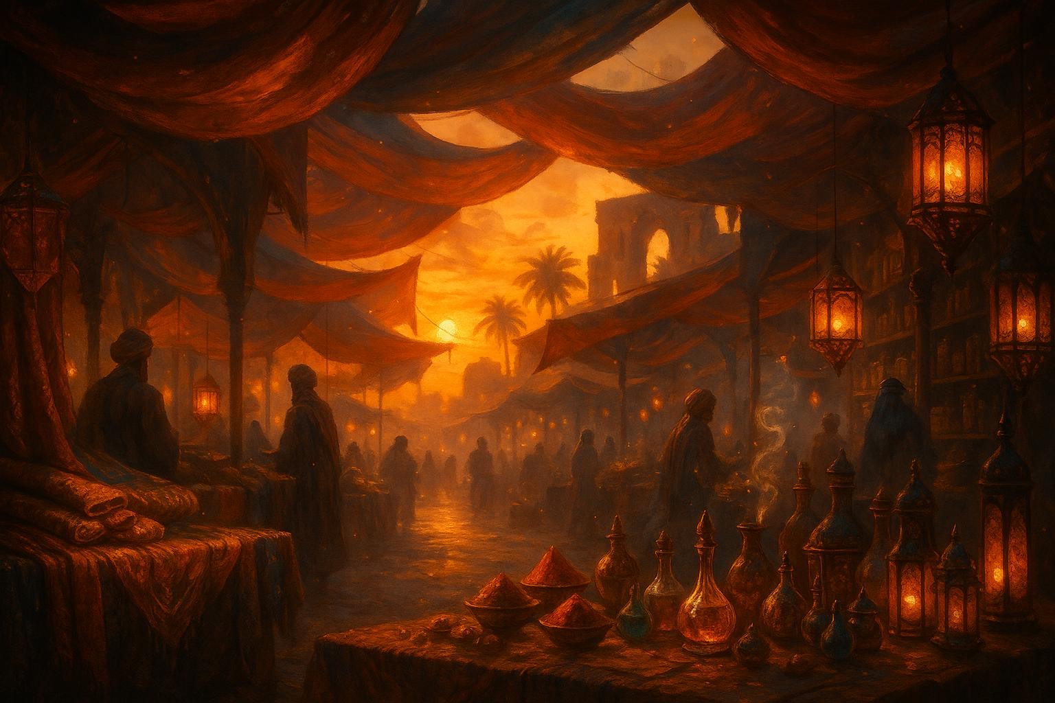Im Herzen erhebt sich ein geheimnisvolles arabisches Schloss, in dem die Hüterin der Düfte und Geschichten lebt: Iqra.
