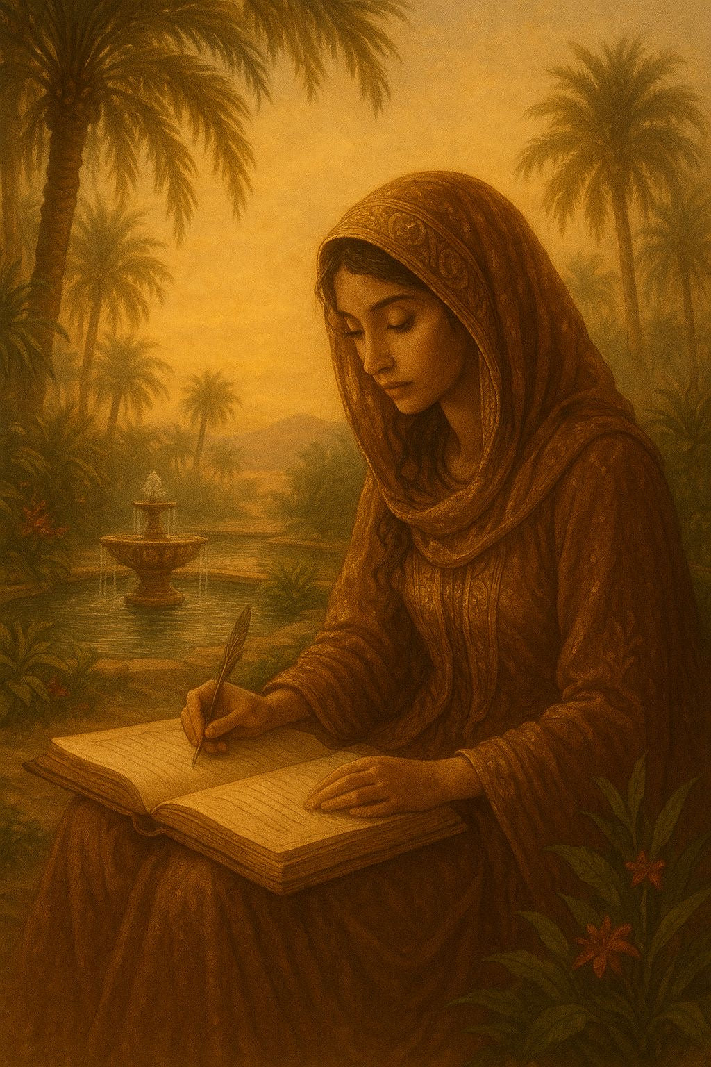 Ihr Leben lang beobachtete sie die Wunder der Erde, die Natur, die Menschen und ferne Genüsse. Obwohl sie das Schloss nie verließ, erreichten sie die Düfte des Gartens, die Klänge des Basars und die Erzählungen der Reisenden.